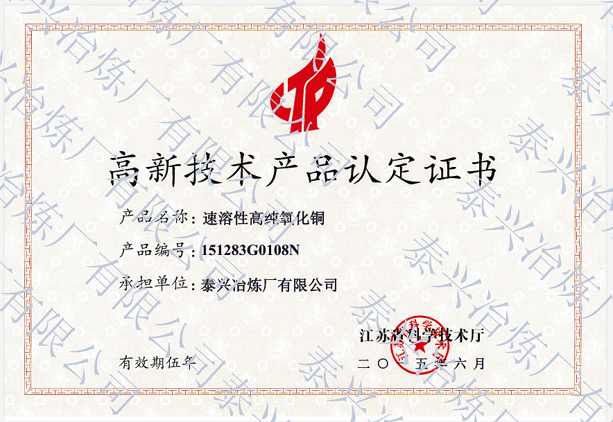 是我國(guó)《工業(yè)氧化亞銅》、《工業(yè)堿式碳酸銅》、《工業(yè)活性氧化銅》行業(yè)標(biāo)準(zhǔn)的起草單位